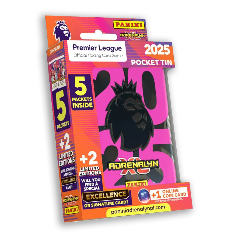 Start your Premier League Adrenalyn XL 2024/25 collection with the Panini Adrenalyn XL Pocket Tin! This compact tin includes 5 packs of trading cards (8 cards per pack), totaling 40 cards, plus 2 guaranteed Limited Edition cards. You will receive a randomly selected tin from four available color variants. With new card categories like Model Pros, Breakthroughs, Hypersonic, and Relentless, plus the coveted Invincible Card, this season’s collection is bigger and better than ever! Chase Golden Ballers, supercharged special cards, and ultra-rare parallel editions as you build your dream team.