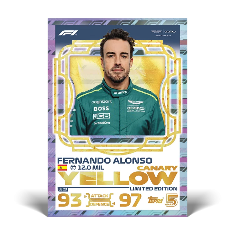 - 🔥 Each tin contains 6 Limited Edition cards, with a guaranteed Canary Yellow Limited Edition of Alonso, Sainz, or Zhou.